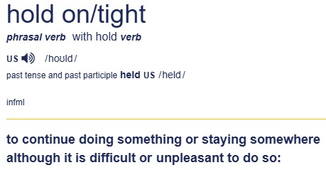 https://dictionary.cambridge.org/dictionary/english/hold-on-tight?q=hold+tight※ 下線は引用者